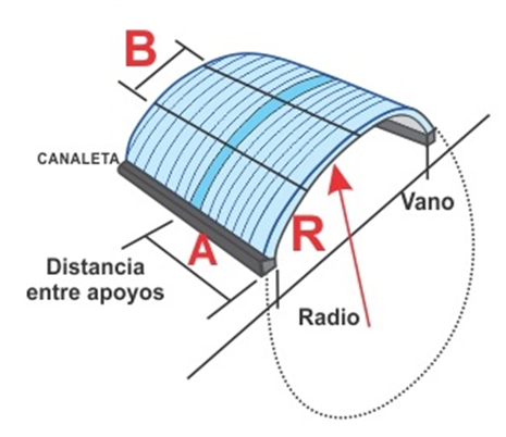 La forma de arco le da una mayor rigidez a la lámina, por tanto no es necesario un menor distanciamiento (2.10 m.) entre los arcos.