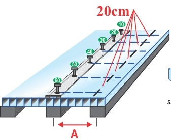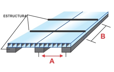 | Espesor | Distancia entre apoyos losngitudinales A | Distancia entre apoyos transversales B |