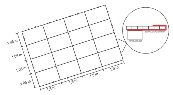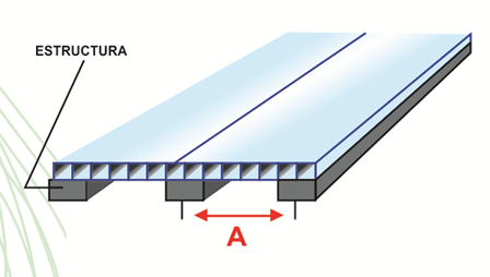 Dependiendo del tipo de techo que haya escogido se debe dimensionar la estructura de soporte, el material de la estructura puede ser de metal, de aluminio o de madera. El ancho mínimo del tubo donde se apoyen las uniones de policarbonato es de dos pulgadas o 50 mm.