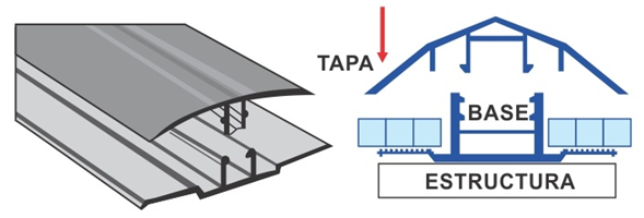 El Perfil Estructural Base y Tapa AL 6-16 sirve como estructura y conector a la vez. Puede resistir entre apoyos hasta 2 metros de distancia. Consta de la Base Estructural y Tapa Estructural.