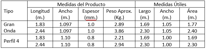 PLANCHAS ONDULADAS DE POLICARBONATO PERFIL 4 Y GRAN ONDA