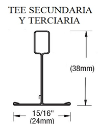 Suspensión tipo 15/16″ de acero galvanizado, color blanco pintado al horno. Para trabajo normal. Las tees principales, secundarias y terciarias tienen el sistema clásico de clip integrado al cuerpo de la tee en una sola pieza que le da mayor rigidez y estabilidad. Los angulos perimetrales tienen un espesor de chapa de 0.45 mm . Que le da mayor rigidez y durabilidad. (Es 12% de más espesor que las normales de 0.40 mm.)