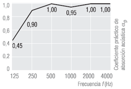 | Aislamiento acústico transmisión sencilla Rw | 13 dB según EN ISO 10140-2:2010 |